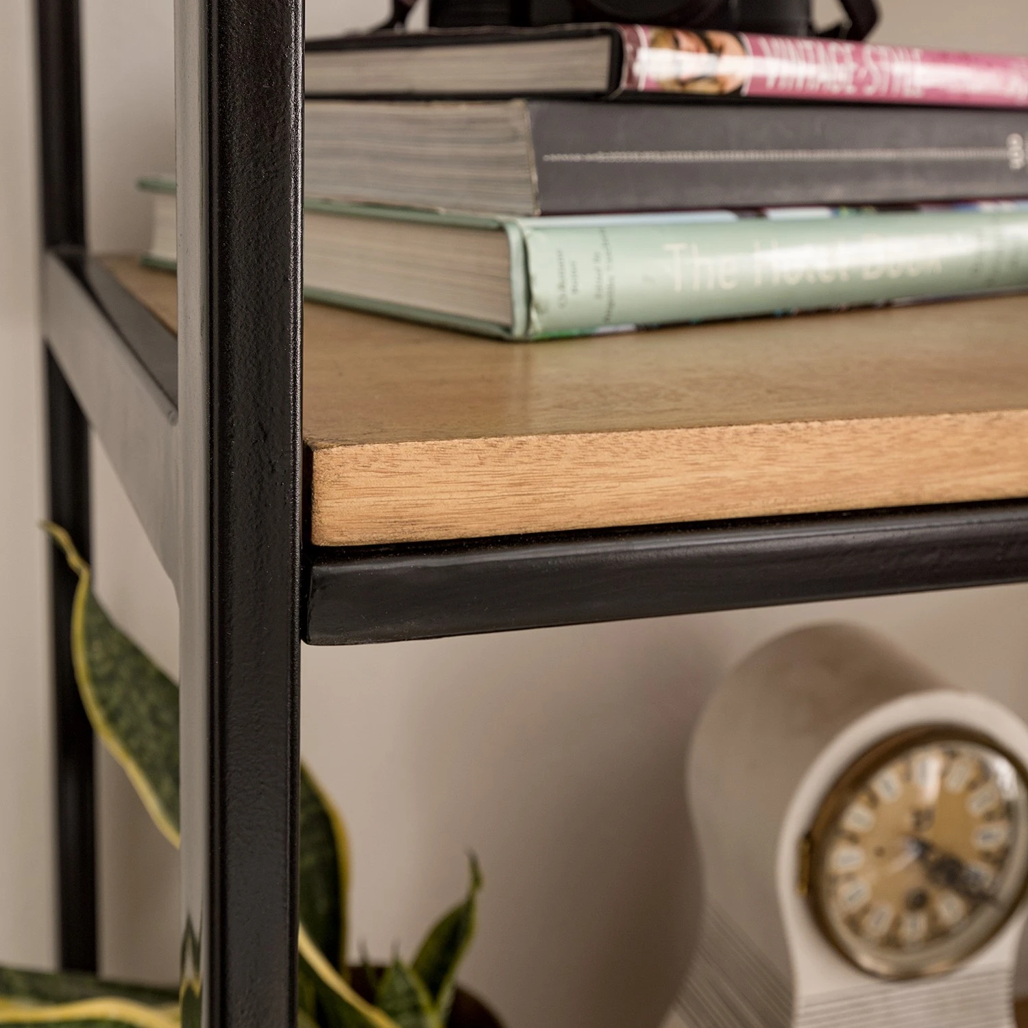 - Corps et étagères : Manguier massif, verni