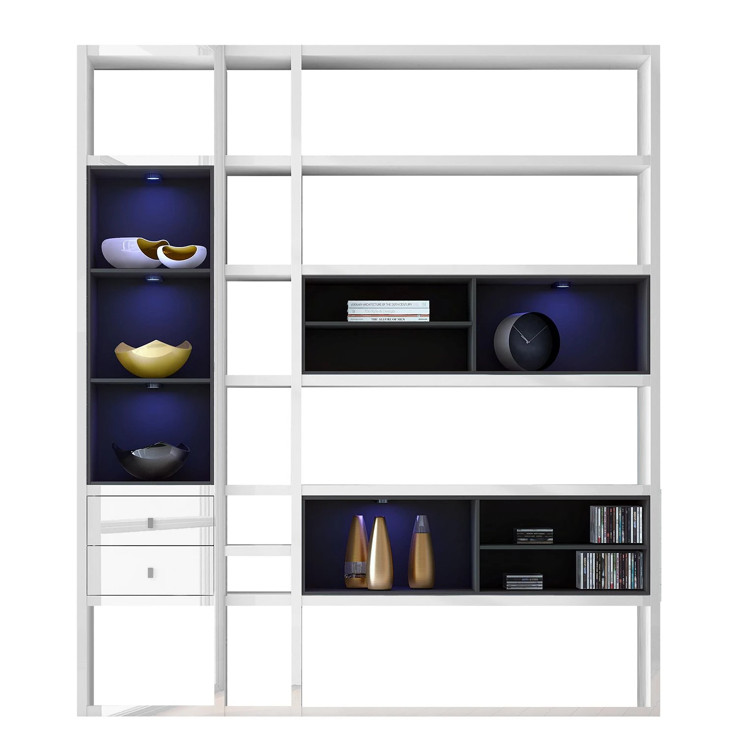 - Contenu de la livraison : mur d’étagères sans décoration