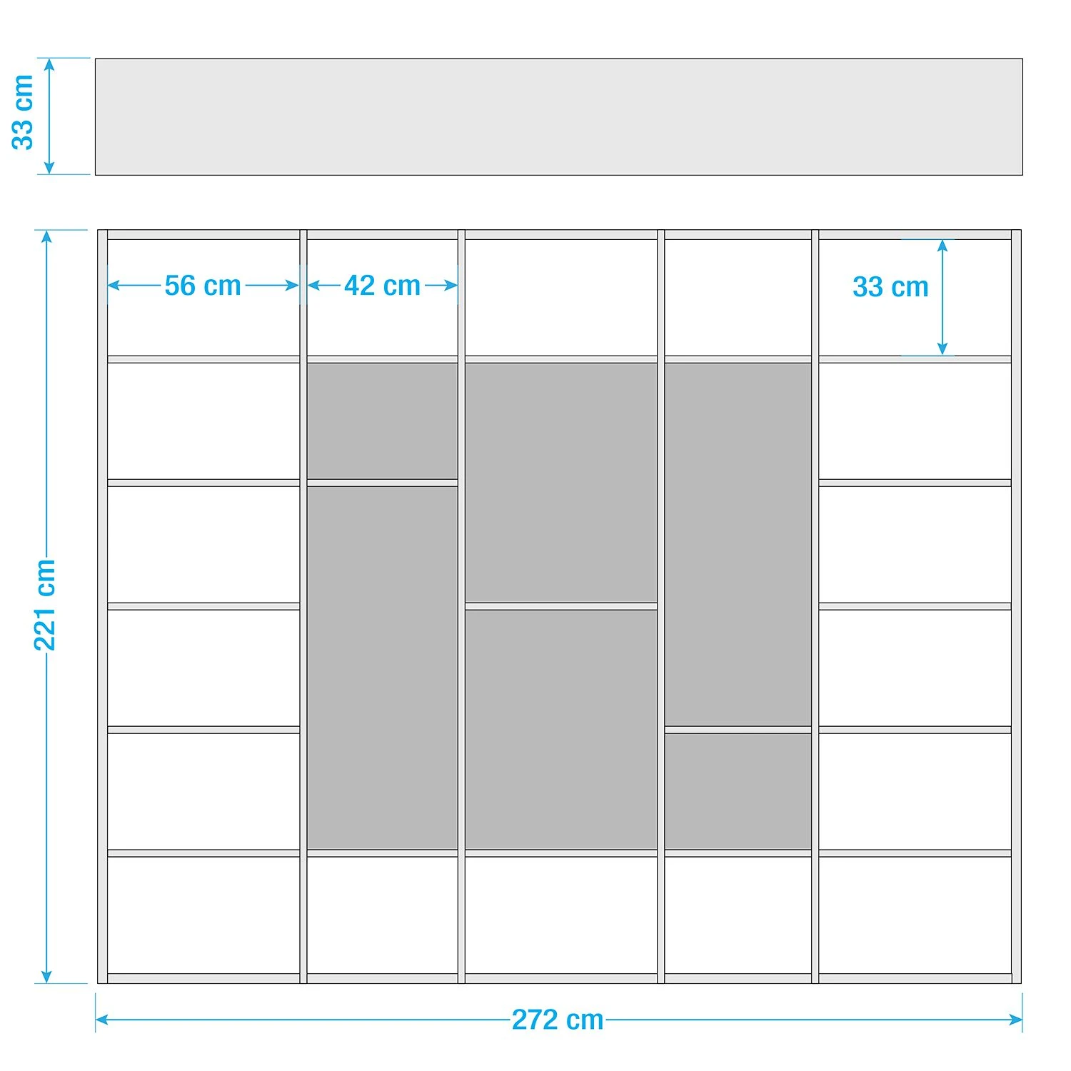- Petits compartiments : 42 x 33 x 32,9 cm chaque