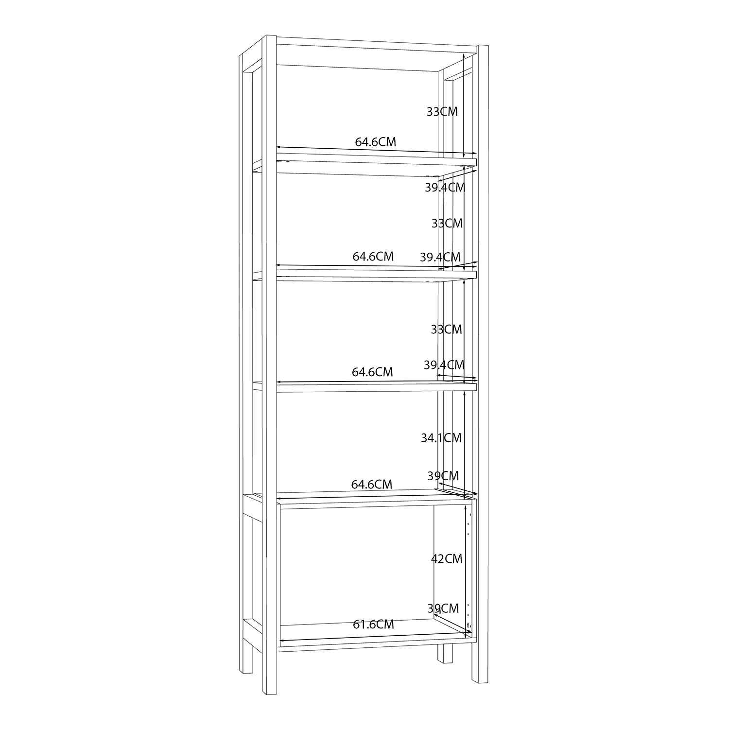 - Charge maximale des étagères : 10 kg