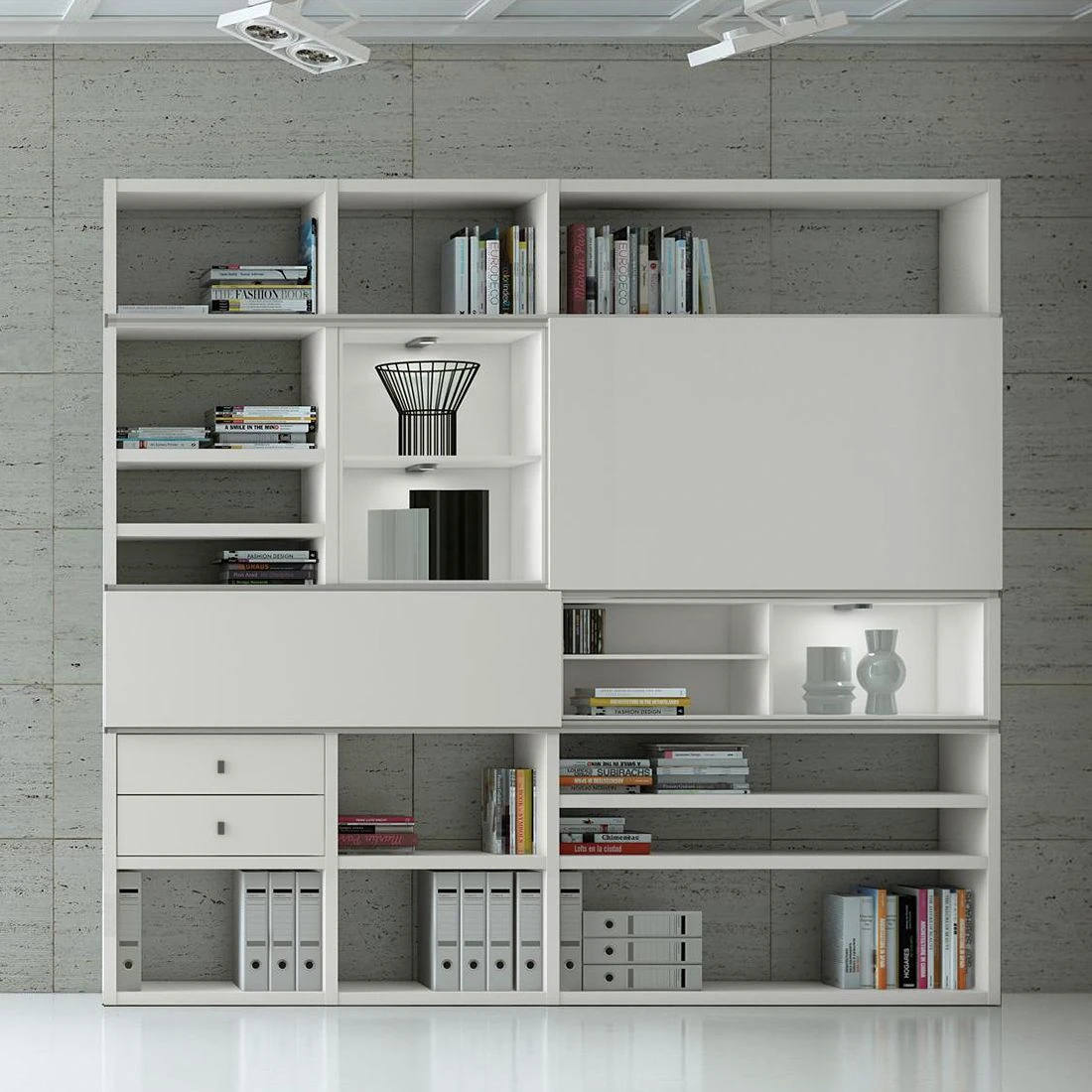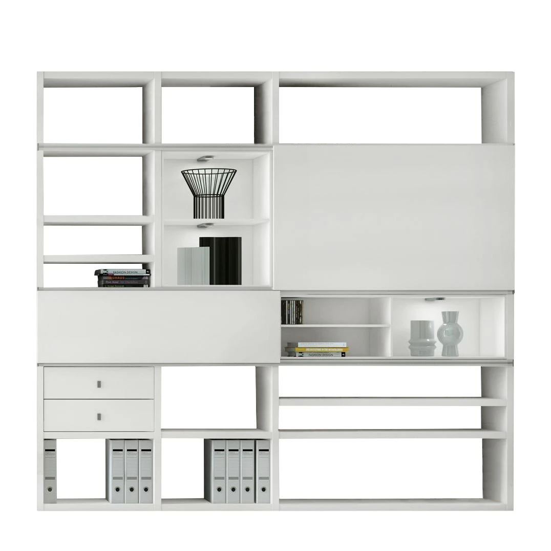 - 2 éléments d’étagères et 12 compartiments ouverts