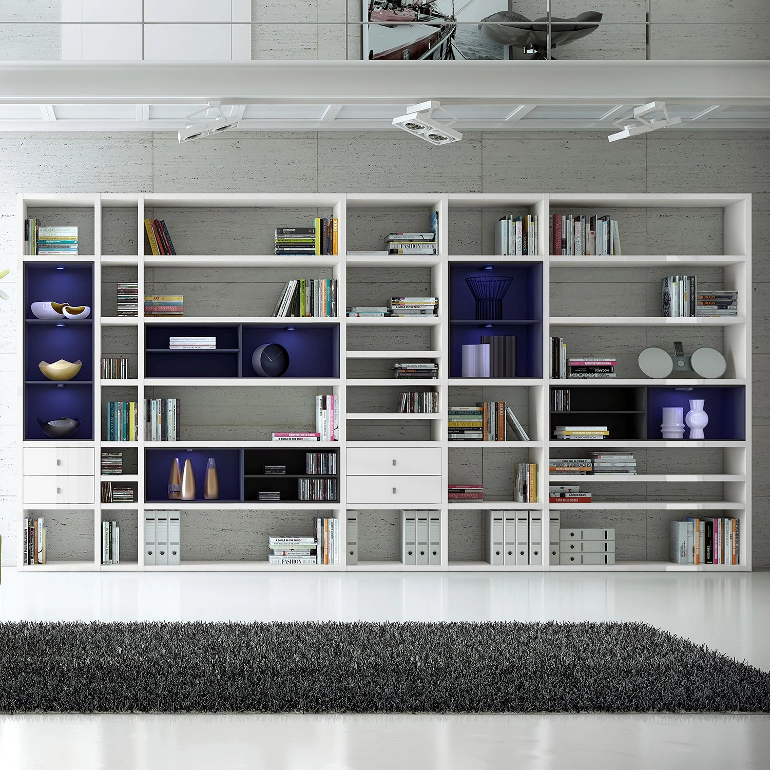 - Contenu de la livraison : mur d’étagères XXL sans décoration