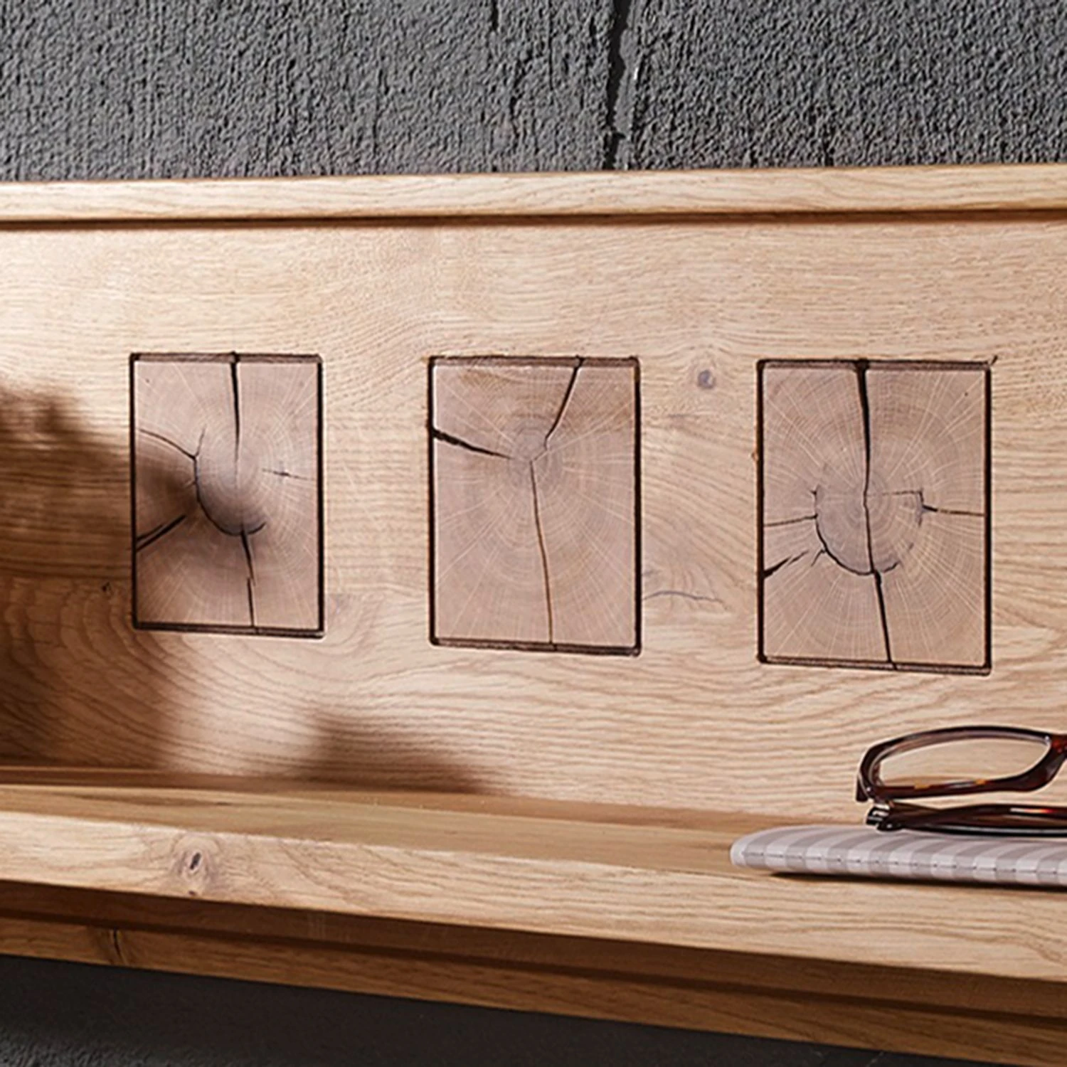- Façade et corps : chêne sauvage massif, huilé
