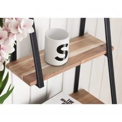 - Étagères : acacia massif fumé et verni