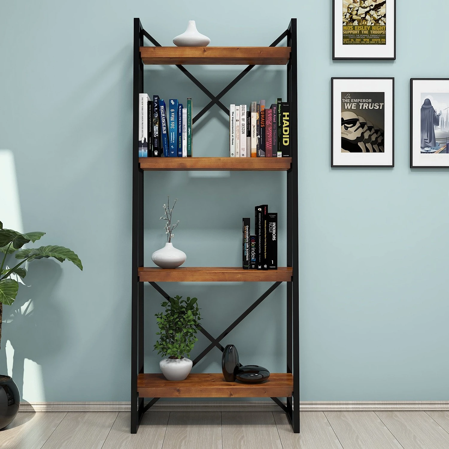 Red Living Étagère Wilga – Pin massif / Métal – Pin / Noir